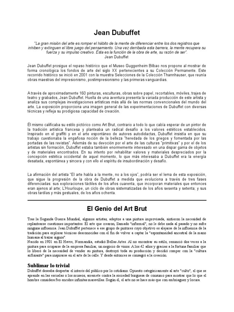 Cierto es que hay entre … El arte es una actividad en la que el ser humano encuentra una manera de satisfacer sus deseos estéticos y comunicativos. En este caso, la producción ya no se denomina objeto, sino obra. Se transmite de generación en generación. Y el neoclásico, transformado en academicismo, se impone como estilo colonizador, gusto de una clase, al cual ha de enfrentarse, como ideología liberadora, el arte popular. La frontera que los separa no es precisa. Se trata de la sublimación de la cultura enfocada a la satisfacción de ciertas necesidades emocionales y … Una clave para entender este proceso está en el libro de shinerdonde da una explicación casi cronológica... Las obras artísticas pueden ser individuales o colectivas, permanentes o efímeras.